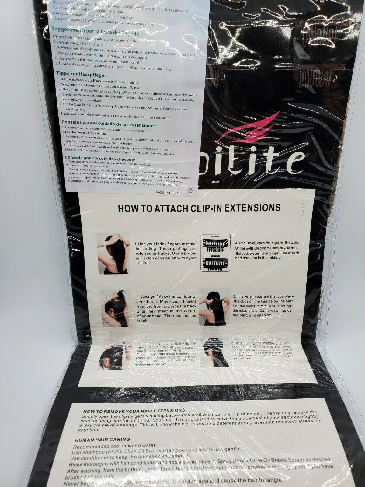 Extensions are packed in specially designed S-noilite package with wear and care instructions.