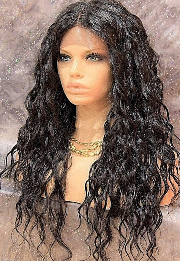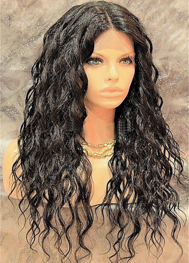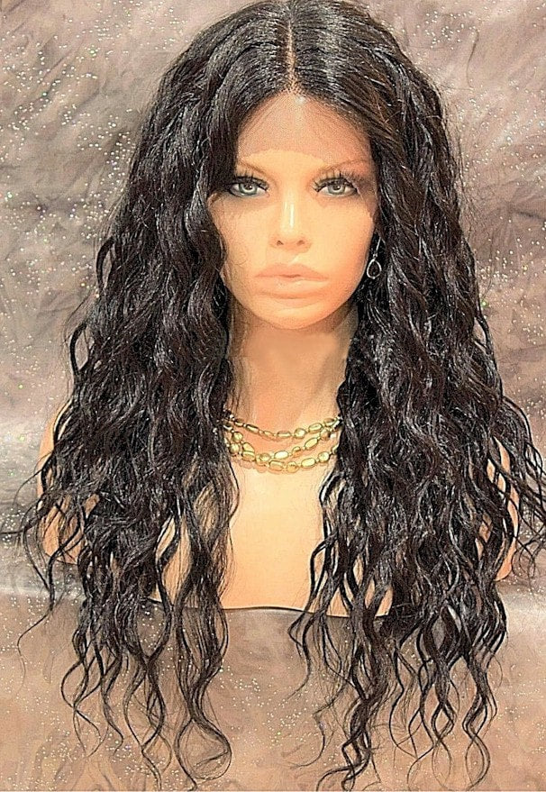 A Lace Front wig offers the most realistic natural looking hairline. Individual hairs are hand tied onto the lace, giving the impression of natural hair growth. Trim lace as needed. Apply lace with bonding glue or lace front tape and finished off with foundation and cosmetic powder.