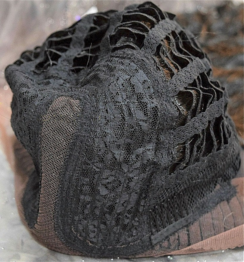 Hair is hand-tied on the front lace part and sewn on the adjustable light-netting cap. The adjustable light-netting cap with 2-3 short combs attached in the front and 1 short comb in the nape or sides to provide a more secure wearing. All you should need to do is adjust the hooks inside the cap to the correct size to suit your head. No Pins or Tape should be required.