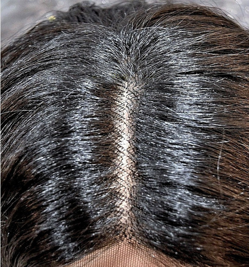 Swiss lace front wig with a hand tied monofilament center part