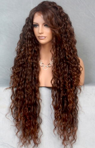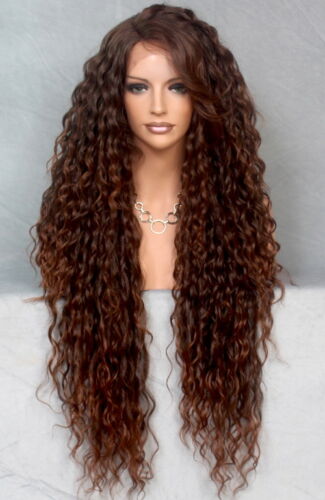 It is made out of deluxe synthetic fiber and is a very high quality wig with adjustable size inner straps to fit the size of your head and good quality cap with center Part.
