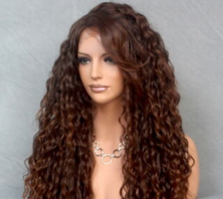 A Lace Front wig offers the most realistic natural looking hairline. Individual hairs are hand tied onto the lace, giving the impression of natural hair growth. Trim lace as needed. Apply lace with bonding glue or lace front tape and finished off with foundation and cosmetic powder.